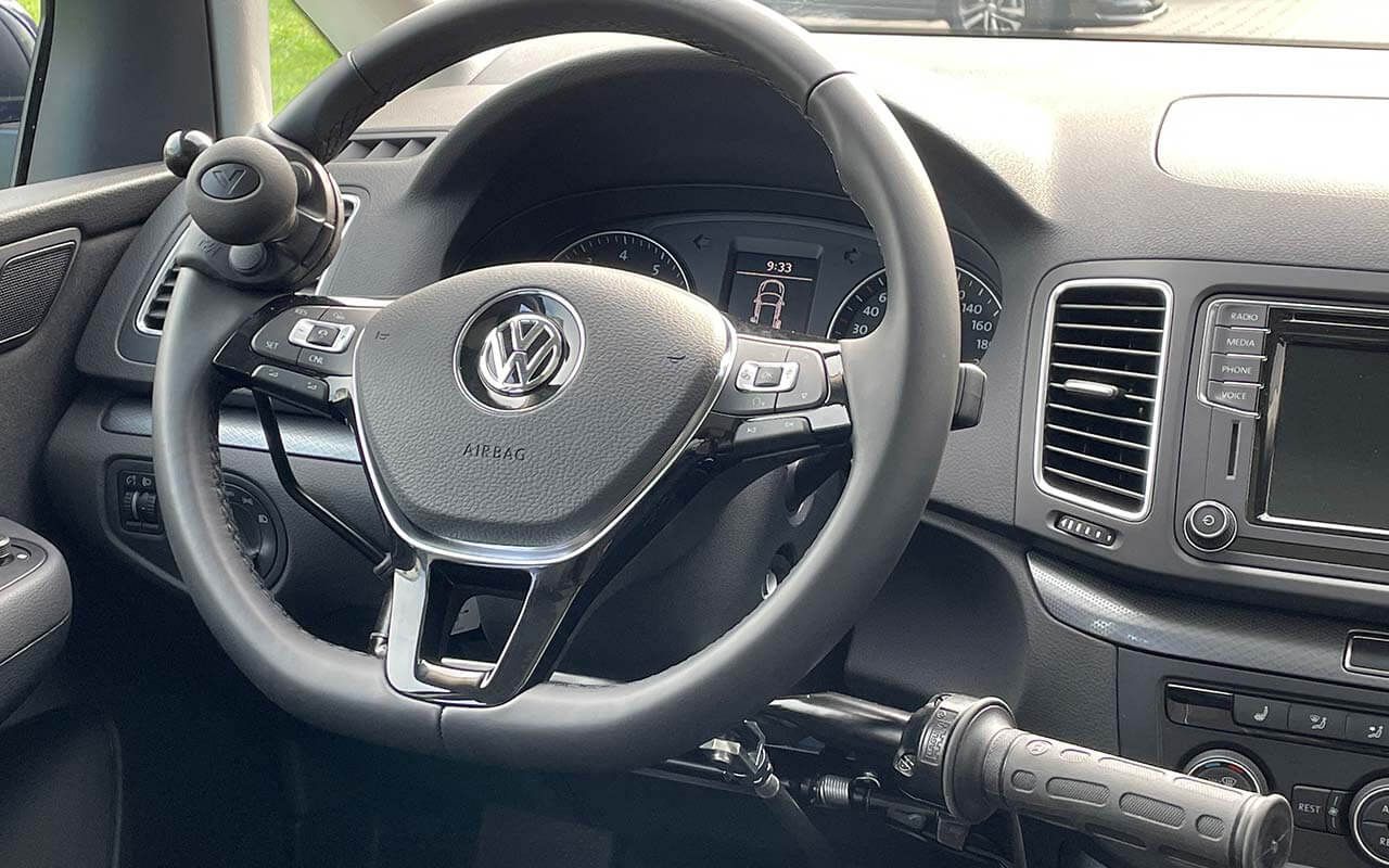 Bei der technischen Ausführung und Ausstattung der gezeigten Handbedienung (beispielsweise Länge, Neigung und Position des Gerätes, Art des Griffes, Zusatzschalter für Blinker, Warnblinkanlage, Hupe, Licht, Tempomat etc.) gehen wir gerne auf Ihre Wünsche ein.